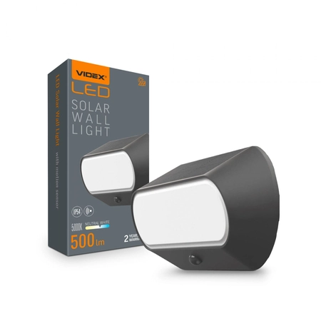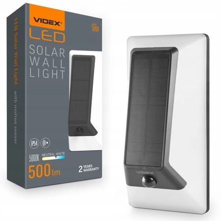 Lampa LED Solarna Ścienna VIDEX 500 Lumenów 5000K z Czujnikiem Ruchu IP54 VL-BHSO-002-S