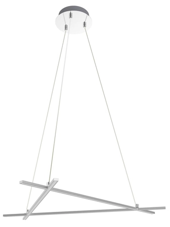 Produkt z ekskluzywnej linii marki APETI. Nowoczesna lampa wisząca o trzech prostych połączonych ze sobą, tworzące trójkąt. Nowoczesne połączenie chromu i ekonomicznego ledu- z troski o użytkownika schowane pod mlecznym paskiem z tworzywa.