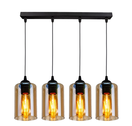 Bistro lampa wisząca czarny 4x40w e27 klosz brązowy