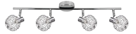 oryginalny klosik druciany w kształcie kuli, zdobiony drobnymi koralikami z akrylu, zamknięty dużym transparentym kryształem w chromowanej oprawce; możliwość regulacji kąta nachylenia klosza w pionie i poziomie; do kompletu: kinkiet, listwa 2 i 3 oraz plafon 3
