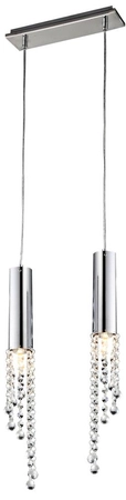 zwis LED-owy w ekskluzywnym kryształowym wydaniu; niezwykle dekoracyjny, proste metalowe klosze zdobione transparentnymi kryształkami efektownie rozpraszającymi strumienie światła, zawieszone na metalowych linkach umożliwiających regulację wysokości;