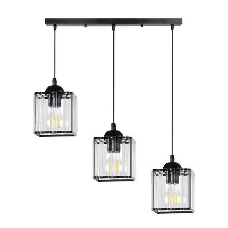 GLASSIA LAMPA WISZĄCA CZARNY 3X40 E27 KLOSZ CZARNY+KRYSZTAŁY BEZBARWNE