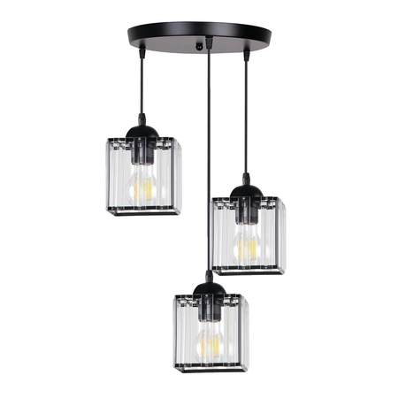 GLASSIA LAMPA WISZĄCA TALERZ CZARNY 3X40 E27 KLOSZ CZARNY+KRYSZTAŁY BEZBARWNE