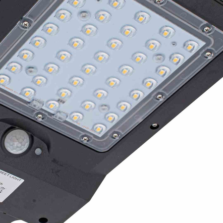 - tryb A – pierwsze 5 godzin pracy: po wykryciu ruchu lampa włącza się na 100% mocy, a następnie 20 sekund bez ruchu przełącza się w tryb ekonomiczny i świeci 30% mocy.
