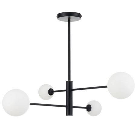 Lampa sufitowa Dorado 4 z eleganckim stelażem w kolorze czarnym to propozycja o ponadczasowym wzornictwie, doskonale wpisująca się w różnorodne aranżacje wnętrz. Zaprojektowana z myślą o funkcjonalności, lampa ta jest wyposażona w cztery źródła światła oraz klasyczne, mleczne klosze, które zapewniają optymalne oświetlenie w salonie, jadalni czy biurze. Metalowy stelaż w głębokim odcieniu czerni nadaje lampie niezwykłego charakteru, a precyzyjne kierunki padania światła dodają subtelności całej konstrukcji.