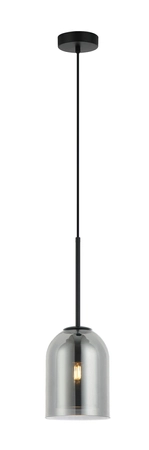Lampa wisząca z kolekcji Elaris, wykonany ze szkła oraz metalu. Przeznaczony na żarówkę o gwincie E27. Podstawa lampy jest w kolorze czarnym.