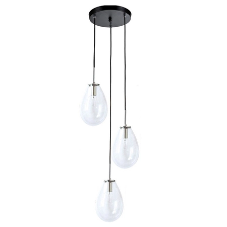 Lampa wisząca Fondi 3 posiada szklane, transparentne klosze, który przypominają swoim kształtem delikatne kroplę wody. Stelaż i podsufitka lampy wykonane są z metalu w kolorze czerni i srebra. Lampa wisząca z kolekcji Fondi to idealna propozycja do pomieszczeń urządzonych w stylu industrialnym i nowoczesnym. Jej minimalistyczna forma świetnie sprawdzi się w aranżacja loftowych.