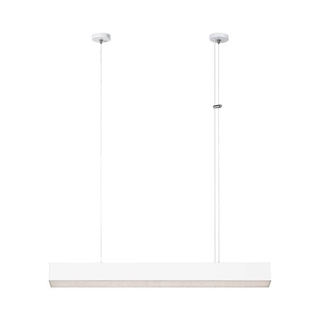 Lampa łączy w sobie nowoczesny design i zaawansowaną technologię. Lampa wykonana jest z trwałego aluminium w białym kolorze, co nadaje jej nowoczesny i elegancki wygląd. Kształt podłużnego prostopadłościanu oraz unikalna blenda o wzorze plastrów miodu sprawiają, że lampa stanowi nie tylko źródło światła, ale również interesujący element dekoracyjny. Lampa zawieszana jest na regulowanych linkach, których maksymalna długość wynosi 120 cm, umożliwiając dostosowanie wysokości do indywidualnych potrzeb. Zaawansowana technologia LED CCT pozwala na regulację barwy światła, dzięki czemu można dopasować oświetlenie do każdej sytuacji i nastroju. Lampa oferuje możliwość sterowania za pomocą aplikacji Tuya Smart, co umożliwia łatwe i wygodne zarządzanie oświetleniem z dowolnego miejsca w domu. Ta lampa to idealne rozwiązanie dla osób ceniących nowoczesne technologie i prosty design.