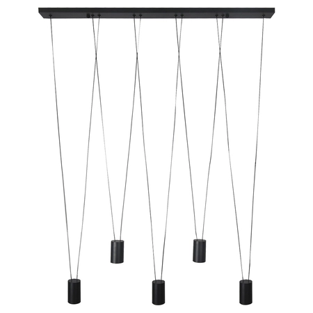 Lampa wisząca Toledo stanowi wyjątkową propozycję do nowoczesnych wnętrz o industrialnym charakterze. Została ona wyposażona w pięć kloszy wykonanych z czarnego metalu, o minimalistycznym kształtcie tub. Klosze te zapewniają miejsce na żarówki o standardowym gwincie GU10. Dzięki swojemu uniwersalnemu, czarnemu kolorowi lampa doskonale wpisuje się w różnorodne aranżacje, idealnie komponując się nad jadalnianym stołem, w salonie czy też sypialni.