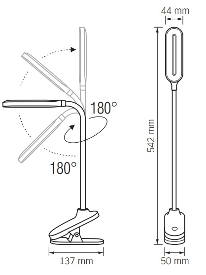 ✔ za pomocą solidnego klipsa można łatwo zainstalować lampę na stole lub biurku z wygodnej dla siebie strony