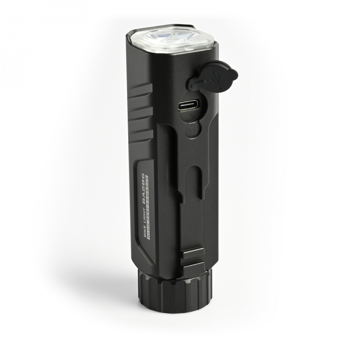 - Szybkie ładowanie: wbudowane złącze ładowania USB-C łatwo i co najważniejsze szybko (do 2,5 godziny) naładuje latarkę za pomocą dołączonego kabla. Złącze pokryte jest gumowaną osłoną, która zapobiega przedostawaniu się wody do obudowy.