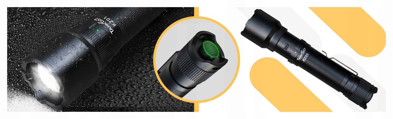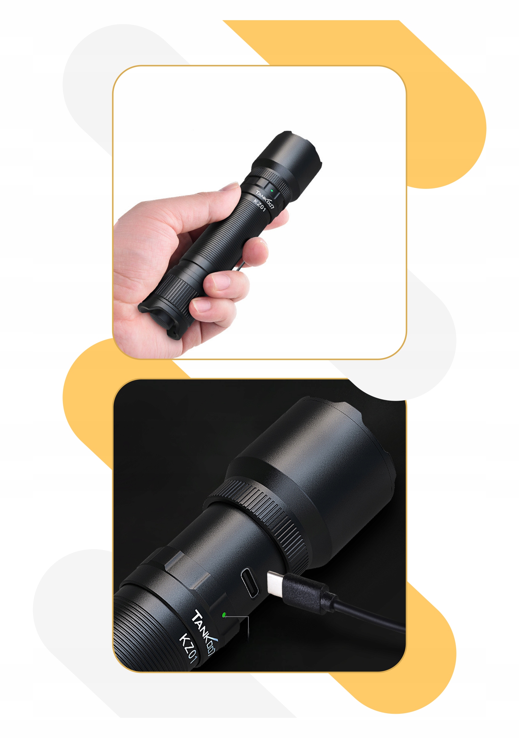 ➡️ Latarka TANK007 KZ01 to potężne, taktyczne źródło światła wyposażone w zaawansowaną diodę typu "Laser-type LED" o mocy 20W oraz płynną regulację skupienia wiązki (ZOOM). Urządzenie generuje strumień świetlny 1300 lumenów i osiąga imponujący zasięg aż do 800 metrów, co czyni ją idealnym narzędziem do myślistwa, nocnego wędkarstwa czy wymagających wypraw outdoorowych.