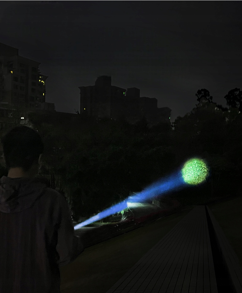 - Funkcja ZOOM - Teleskopowe ogniskowanie obsługiwane jedną ręką, pozwalające na płynne przejście od szerokiego światła rozproszonego (floodlight) do silnie skupionego promienia punktowego (spotlight) o zasięgu 800m.