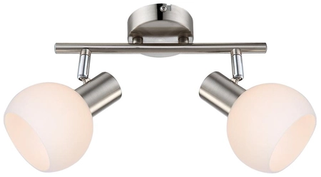 typowy w formie, a jednak inny niż wszystkie: satynowa podstawa, biały klosz w kształcie otwartej kuli; Możliwość uzyskania różnokolorowych efektów świetlnych dzięki zastosowaniu sterownika RGB uruchamianego pilotem na podczerwień; żarówka RGB w komplecie; do użycia również ze standardowymi żarówkami; regulacja kąta nachylenia