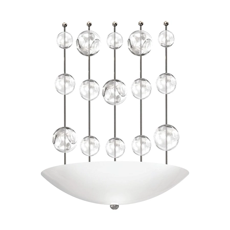 Lampa ścienna PERLA BIANCO 856 doda blasku wnętrzom utrzymanym w nowoczesnej stylistyce. Szklane kule “naplecione” na metalowe pręty pięknie odbijają światło, a biała oprawa w kształcie półkola będzie pasować do ściany we właściwie każdym kolorze.