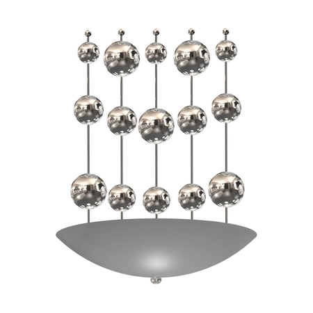 Lampa PERLA SILVER 855 to model przeznaczony do montażu ściennego. Odbijające światło, szklane kule na metalowych prętach i srebrna oprawa w kształcie półkola dodadzą każdemu wnętrzu efektu glamour, pięknie je przy tym rozświetlając. Model ten wygląda jeszcze efektowniej z lampą wiszącą z tej samej linii.