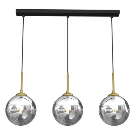 Podłużne lampy w kształcie dymionej kuli dostępne są w kilku rozmiarach. W ofercie są rozmiary zaczynające się od średnicy 140mm i dochodzące do nawet 170mm. Lampy mogą mieć ułożenie regularnych kloszy albo całkowicie asymetryczne ich rozmieszczenie. Lampy mają mocno zamkniętą konstrukcję, dlatego bardzo skupiają światło i są lampami stricte punktowymi. Do kloszy zakładane są żarówki led E14. Jest to lampa w stylu glamour, która w wersji 3-punktowej doskonale sprawdzi się nad stołem w jadalni. W ofercie dostępne są lampy z ustawieniem kloszy symetrycznie lub nieregularnie. Taka różnorodność modeli dostosowana jest do wymagań konkretnych pomieszczeń. Samo mocowanie dymionych kul ma akcent złotawy, co przełamuje szare i srebrne tony dominujące w kolorystyce lampy. Lampa sufitowa z kloszami w rozmiarze 140mm + 200mm + 250mm sprawdzi się w różnego rodzaju pomieszczeniach. To klasyczny wzór, który najciekawiej może komponować się z jasnymi wnętrzami łazienek. Do kloszy zakładane są tutaj żarówki LED E14 i E27. Lampa jest utrzymana w stylu glamour, pasuje do wnętrz klasycznych, ale z nutą nowoczesności. Będzie dobrze oświetlała małe pomieszczenia łazienek i toalet, jednocześnie nadając im przytulności i niepowtarzalnego stylu. Stylowa mieszanka różnych materiałów łączy się w harmonijną całość, która sprawia, że lampa przyciąga wzrok nawet wtedy, gdy jest wyłączona.