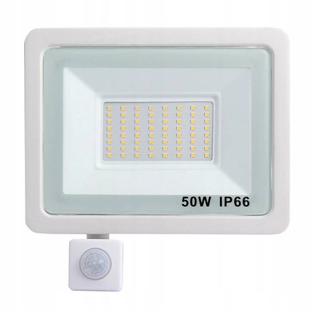 NAŚWIETLACZ HALOGEN Z CZUJNIKIEM RUCHU BIAŁY 50W B.ZIMNA 6000K