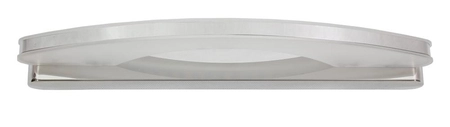 gustowna kombinacja chromu z matowym akrylem; akrylowy klosz poziomo otoczony chromową nakładką blokującą strumień światła skierowany na wprost, intensyfikując go tym sposobem w pionie; światło imponująco odbija się w lustrzanej powierzchni chromowej podstawy; brak możliwości regulacji kąta padania światła; idealna propozycja nad lustro; dostępny w dwóch szerokościach