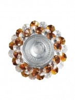 Eclipse bursztyn- to cudowna oprawa świetlna jak i ozdoba mieszkania. Na pierwszy rzut oka, do złudzenia przypomina, biżuterię z dawnych lat, a mianowicie klipsy! Ten okrągły kształt, to metalowa konstrukcja pokryta chromem, na której przymocowane są liczne szklane elementy, które są transparentne, choć w kolorze bursztynu. Produkt posiada jedno źródło światła, jakim jest oprawa żarówki Gu10. Lampa ta bezsprzecznie wpisuje się w aranżacje retro, vintage oraz klasyczną! Dekoracja i oświetlenie w jednym, to coś co sobą przedstawia Eclipse! Pasuje do salonu, sypialni, łazienki oraz przedpokoju. W komercyjnych miejscach jak małe klimatyczne kawiarnie czy restauracje, też sprawdzi się znakomicie! Występuje także inna wersja lampy Eclipse.