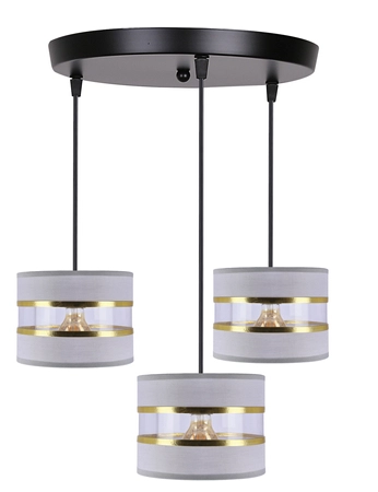 PANDY lampa wisząca czarny talerz 3x40W E27 abażur szary+złoty