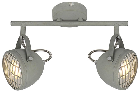 nowoczesna oprawa z metalowym kloszem zdobionym dekoracyjną kratką, w najmodniejszym w tym sezonie szarym stonowanym kolorze, imitującym beton; pasuje również do wnętrz w stylu industrialnym; posiada regulację klosza w dwóch płaszczyznach; możliwość zastosowania dowolnego źródła światła