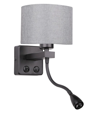 POLO KINKIET 1X40W E27 + 2W LED CZARNY ABAŻ. OKRĄGŁY SZARY