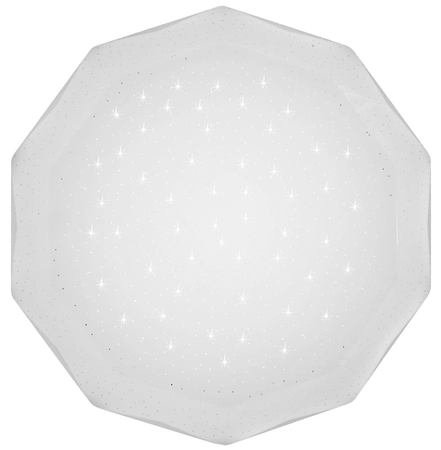 akrylowy biały klosz o niespotykanej przestrzennej budowie z widocznym po zaświeceniu efekcie gwiezdnego nieba + metalowa podstawa; wyposażony w wymienne moduły LED