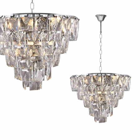 Wyrazisty design żyrandolu CHELSEA CHROME sprawia, że pięknie wypełni on każde wnętrze, nadając mu niecodzienny charakter. Lampa ta posiada sześć punktów świetlnych. Wykonano ją z wysokiej jakości tworzyw: metalu i kryształu, które wspaniale się uzupełniają, tworząc przyjemną dla oka grę światłem. Model ten doskonale sprawdzi się w przestronnych przestrzeniach loftowych lub utrzymanych w stylu glamour. Będzie dobrze wyglądać w towarzystwie bieli, czerni, szarości, a także bardziej wyrazistych kolorów, jak czerwień lub zieleń.